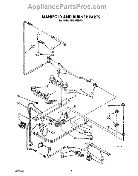 Parts for Whirlpool SE950PERW6: 06 - Manifold And Burner Parts