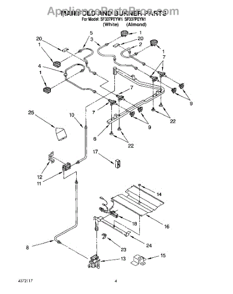Parts for Whirlpool SF337PEYW1: 03 - Manifold And Burner Parts