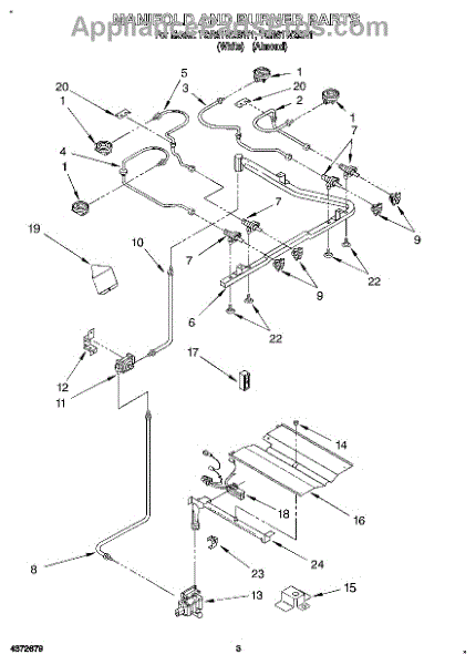 Parts for Whirlpool TGR61W2BN1: 03 - Manifold And Burner Parts