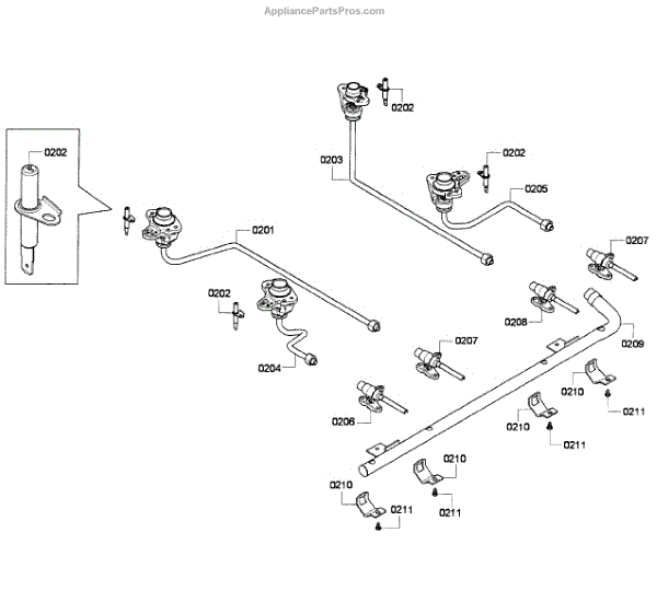 The Orifice Holder Assembly is an OEM part for Bosch gas ranges. It securely holds the orifice which regulate gas flow to each burner, allowing flame levels to be finely tuned during cooking.