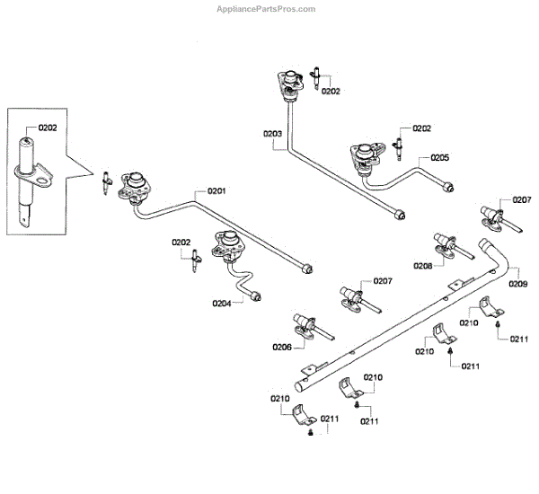 The Orifice Holder Assembly is an OEM part for Bosch gas ranges. It securely holds the orifice which regulate gas flow to each burner, allowing flame levels to be finely tuned during cooking.