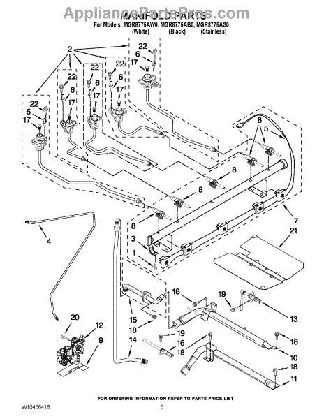 Note: For LP Broil orifice order WPW10400497. For LP bake orifice order WPW10400494.