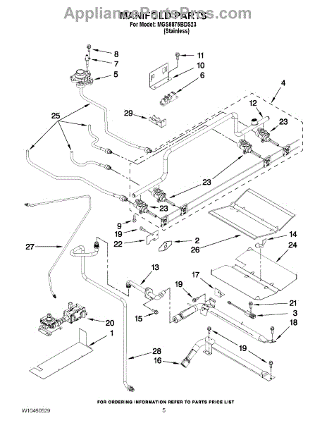 This factory screw secures appliance components to their mounting points. Replace missing, worn, or stripped hardware to restore a tight fit, proper alignment, and quieter operation across the affected assembly.