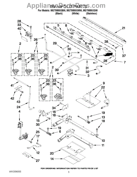 This manifold assembly routes the appliance's gas supply to the burner control valves, restoring safe, consistent distribution when the original tube is cracked, corroded, or leaking. It helps ensure even flame performance across multiple burners. What it does: