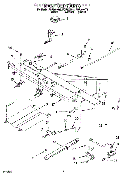 This factory screw secures appliance components to their mounting points. Replace missing, worn, or stripped hardware to restore a tight fit, proper alignment, and quieter operation across the affected assembly.
