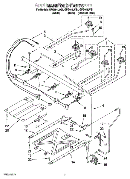 Parts for Whirlpool GFG464LVS1: 03 - Manifold Parts