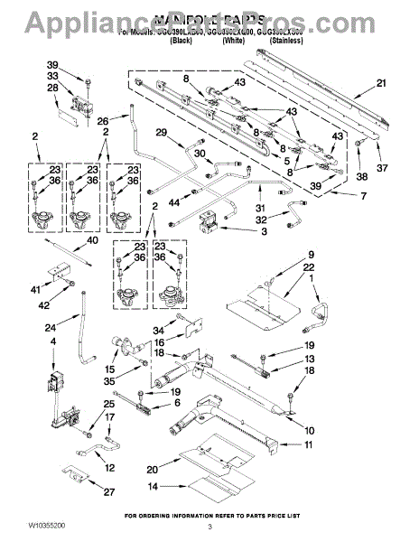 This manifold assembly routes the appliance's gas supply to the burner control valves, restoring safe, consistent distribution when the original tube is cracked, corroded, or leaking. It helps ensure even flame performance across multiple burners. What it does: