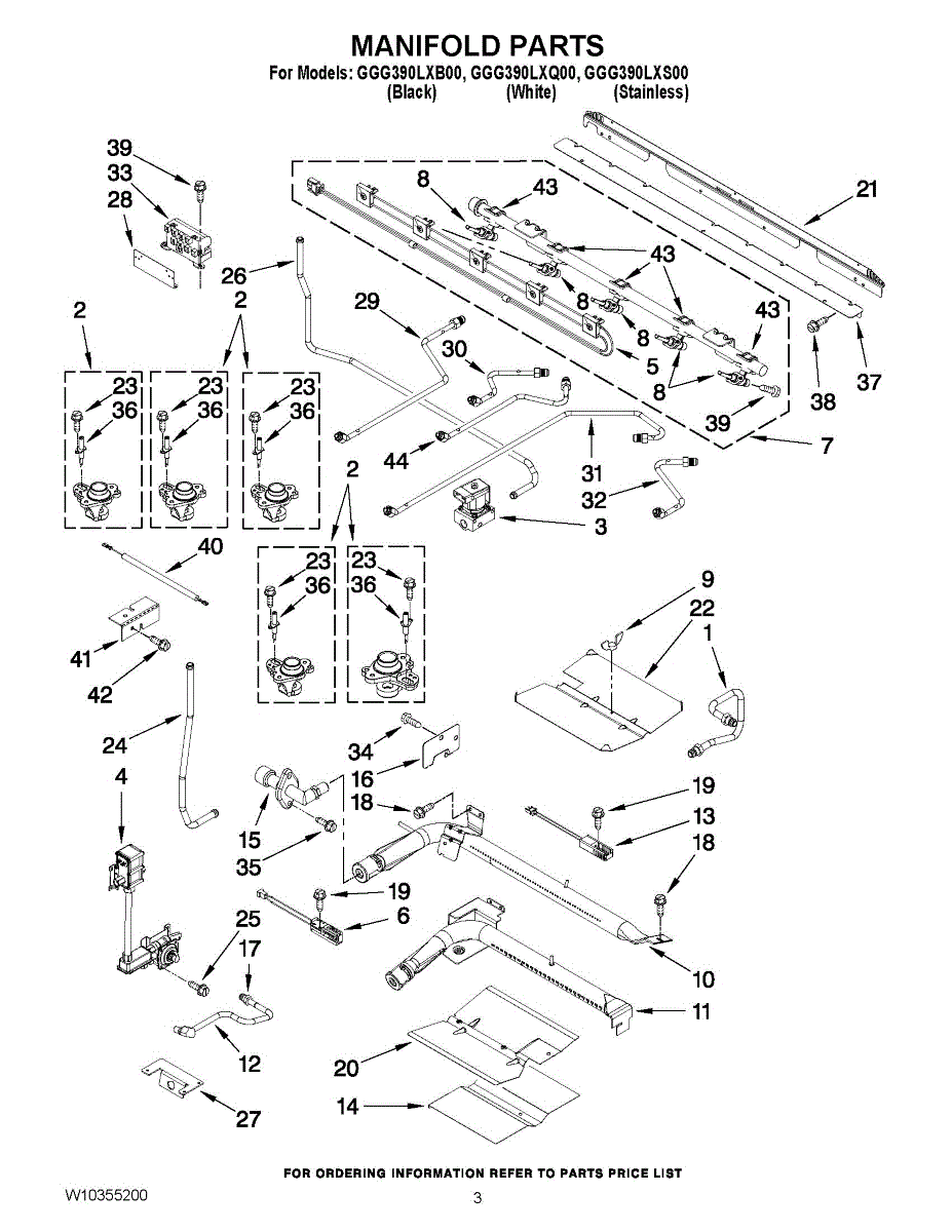 This manifold assembly routes the appliance's gas supply to the burner control valves, restoring safe, consistent distribution when the original tube is cracked, corroded, or leaking. It helps ensure even flame performance across multiple burners. What it does: