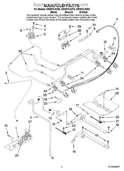 Parts for Whirlpool GW397LXUB5: 03 - Manifold Parts