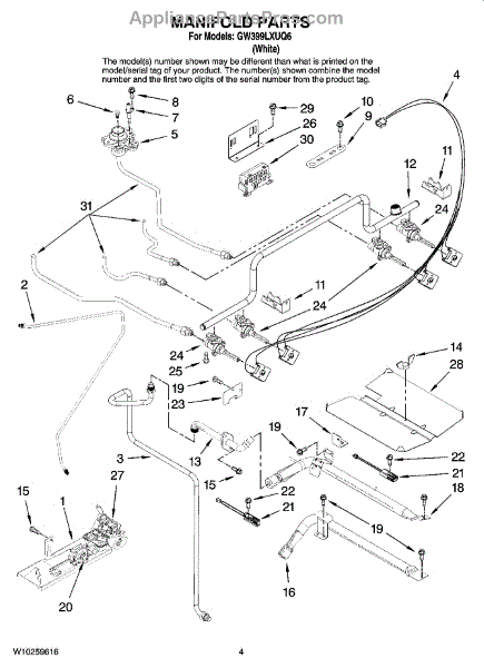 Parts for Whirlpool GW399LXUQ6: 03 - Manifold Parts