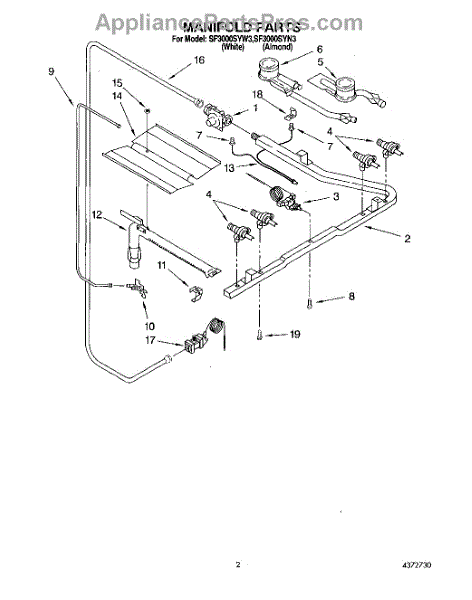 Parts for Whirlpool SF3000SYN3: 02 - Manifold Parts