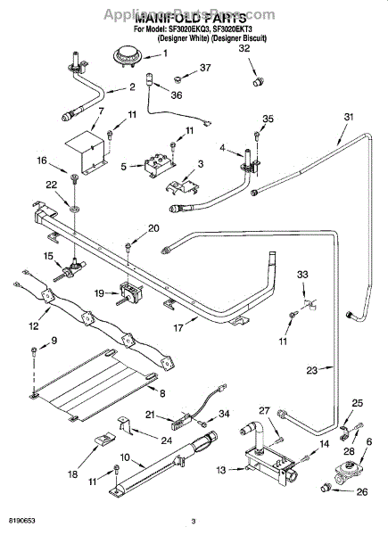 Parts for Whirlpool SF3020EKQ3: 03 - Manifold Parts