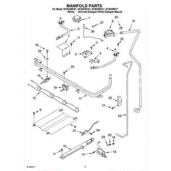 Parts for Whirlpool SF3020EKW1: 03 - Manifold Parts
