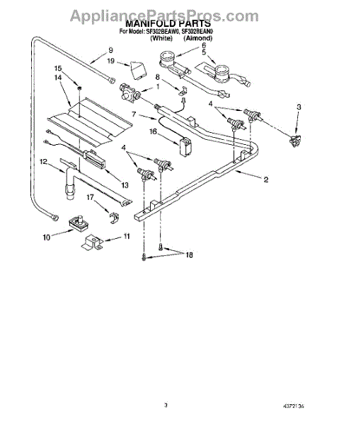 Parts for Whirlpool SF302BEAN0: 02 - Manifold Parts