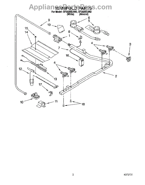 Parts for Whirlpool SF302BEAW2: 02 - Manifold Parts