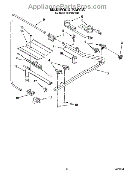 Parts for Whirlpool SF302BEYQ1: 03 - Manifold Parts
