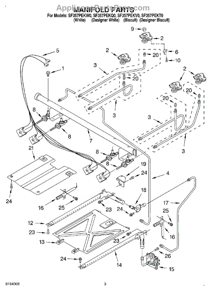 Parts for Whirlpool SF357PEKW0: 03 - Manifold Parts