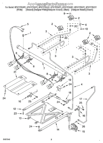 Parts for Whirlpool SF377PEGT7: 03 - Manifold Parts