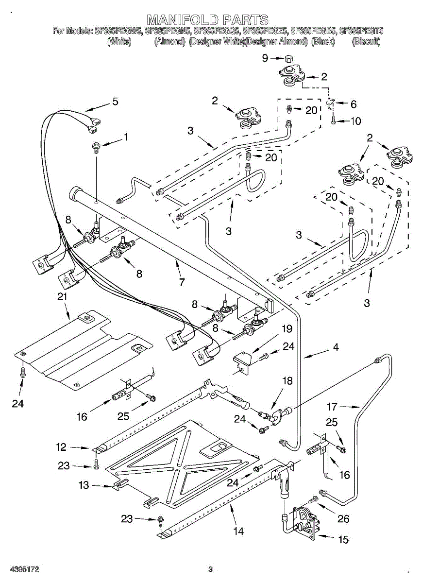 Parts for Whirlpool SF385PEGB5: 03 - Manifold Parts