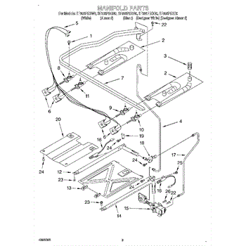 This factory screw secures appliance components to their mounting points. Replace missing, worn, or stripped hardware to restore a tight fit, proper alignment, and quieter operation across the affected assembly.