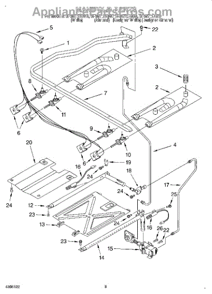 This factory screw secures appliance components to their mounting points. Replace missing, worn, or stripped hardware to restore a tight fit, proper alignment, and quieter operation across the affected assembly.