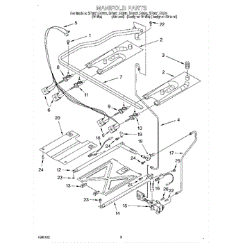 This factory screw secures appliance components to their mounting points. Replace missing, worn, or stripped hardware to restore a tight fit, proper alignment, and quieter operation across the affected assembly.
