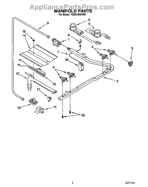 Parts for Whirlpool TGR51W0YW0: 03 - Manifold Parts