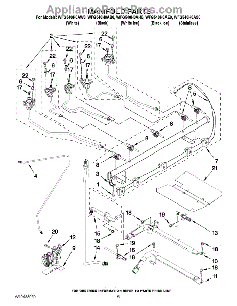 Parts for Whirlpool WFG540H0AH0: 04 - Manifold Parts