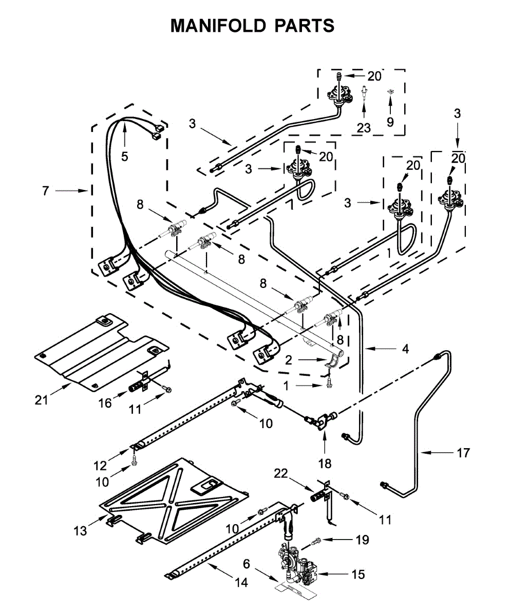 Gas tubing connects your range's gas supply to burner components. Replace if cracked, kinked, damaged, or leaking. Essential structural part for safe operation.