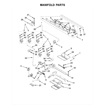 The Manifold is an OEM component for Whirlpool gas ranges. It serves as the main conduit routing gas from the supply line to each burner via individual brass valves. Rugged steel construction ensures durability under appliance pressures and heat.