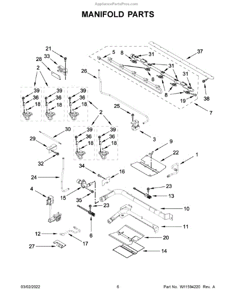 The Manifold is an OEM component for Whirlpool gas ranges. It serves as the main conduit routing gas from the supply line to each burner via individual brass valves. Rugged steel construction ensures durability under appliance pressures and heat.
