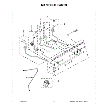 This Valve-Brnr is an OEM part for Whirlpool Ranges. It regulates the flow of gas to the burner for cooking. Wear, corrosion, or gas leaks can cause issues with this component.