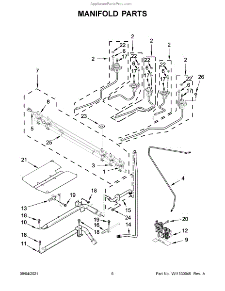 This manifold is the main gas distribution assembly that routes fuel to the burner valves for safe, consistent ignition and heating. It restores proper gas flow so burners and oven heat as designed. What it does: