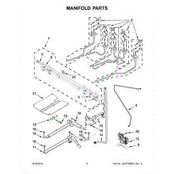 This replacement manifold assembly routes fluid or gas from the supply to the appliance's internal components, restoring proper distribution and operation. Use this genuine-style manifold when the original is cracked or otherwise failing. What it does