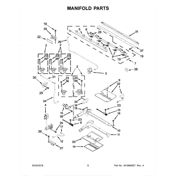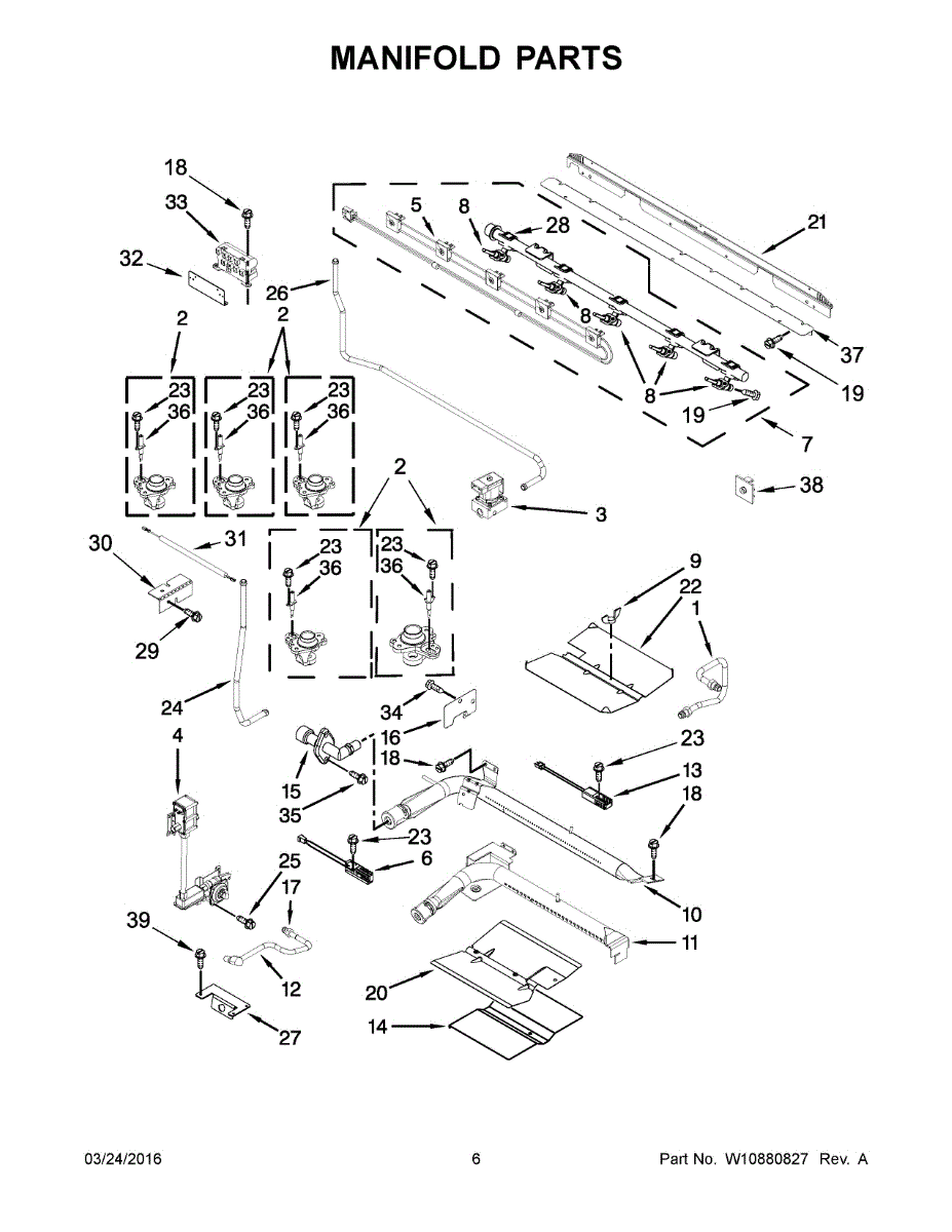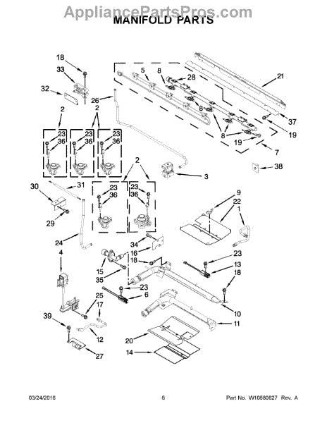 This manifold assembly routes the appliance's gas supply to the burner control valves, restoring safe, consistent distribution when the original tube is cracked, corroded, or leaking. It helps ensure even flame performance across multiple burners. What it does: