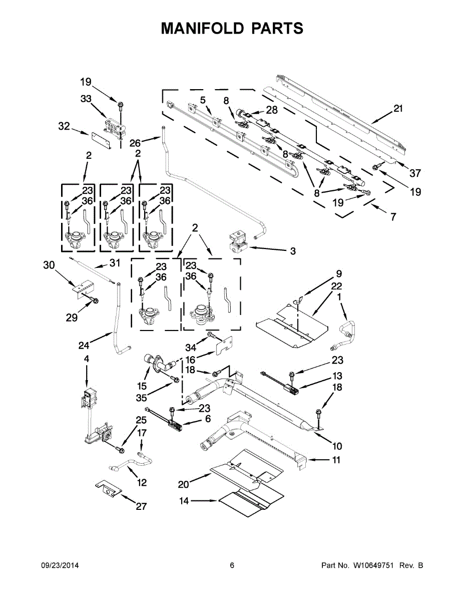 Burner won't turn off or ignite? This manifold assembly distributes gas to all control valves. Moderate DIY install—use leak detection fluid.
