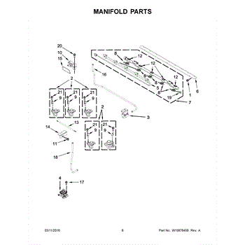The Manifold is an OEM component for Whirlpool gas ranges. It serves as the main conduit routing gas from the supply line to each burner via individual brass valves. Rugged steel construction ensures durability under appliance pressures and heat.