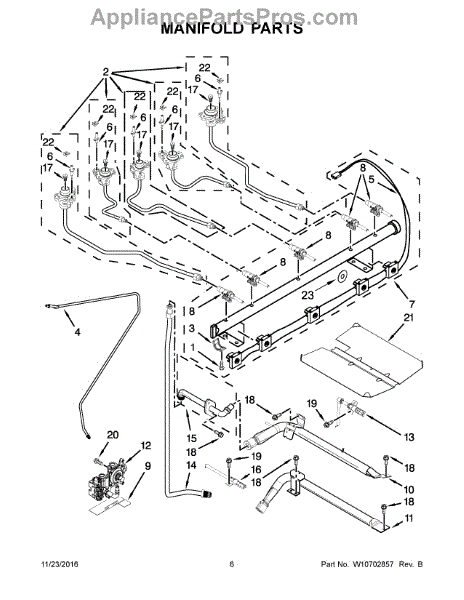 Replace a cracked or failing manifold assembly that prevents proper gas distribution to burners. Restores even heating and burner operation on your range.