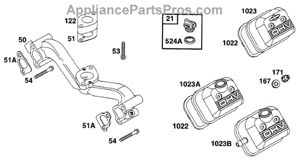Parts for Briggs & Stratton 290442-1157-A1: Manifold, Rocker Covers Parts