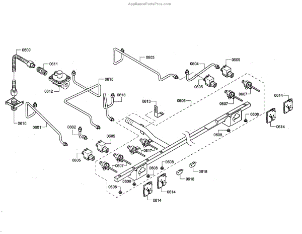 This gas pressure regulator controls and stabilizes incoming supply pressure to the appliance manifold, helping ensure consistent burner flames and reliable ignition. Replace if the original regulator is sticking or no longer maintaining correct pressure.