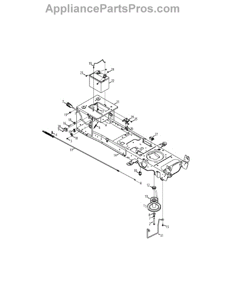 Secures the battery in your lawn tractor or riding mower. Replace if cracked, broken, or missing to prevent battery movement and secure mounting.