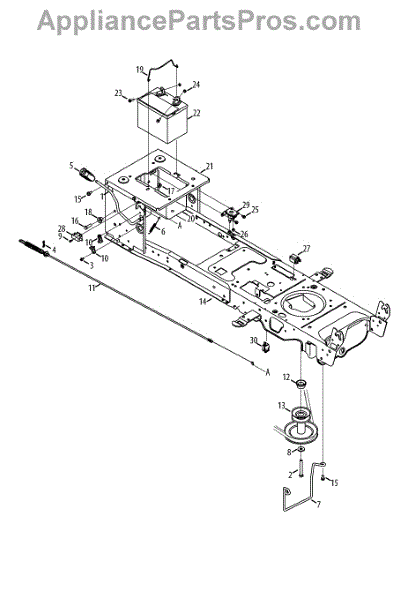 Secures the battery in your lawn tractor or riding mower. Replace if cracked, broken, or missing to prevent battery movement and secure mounting.