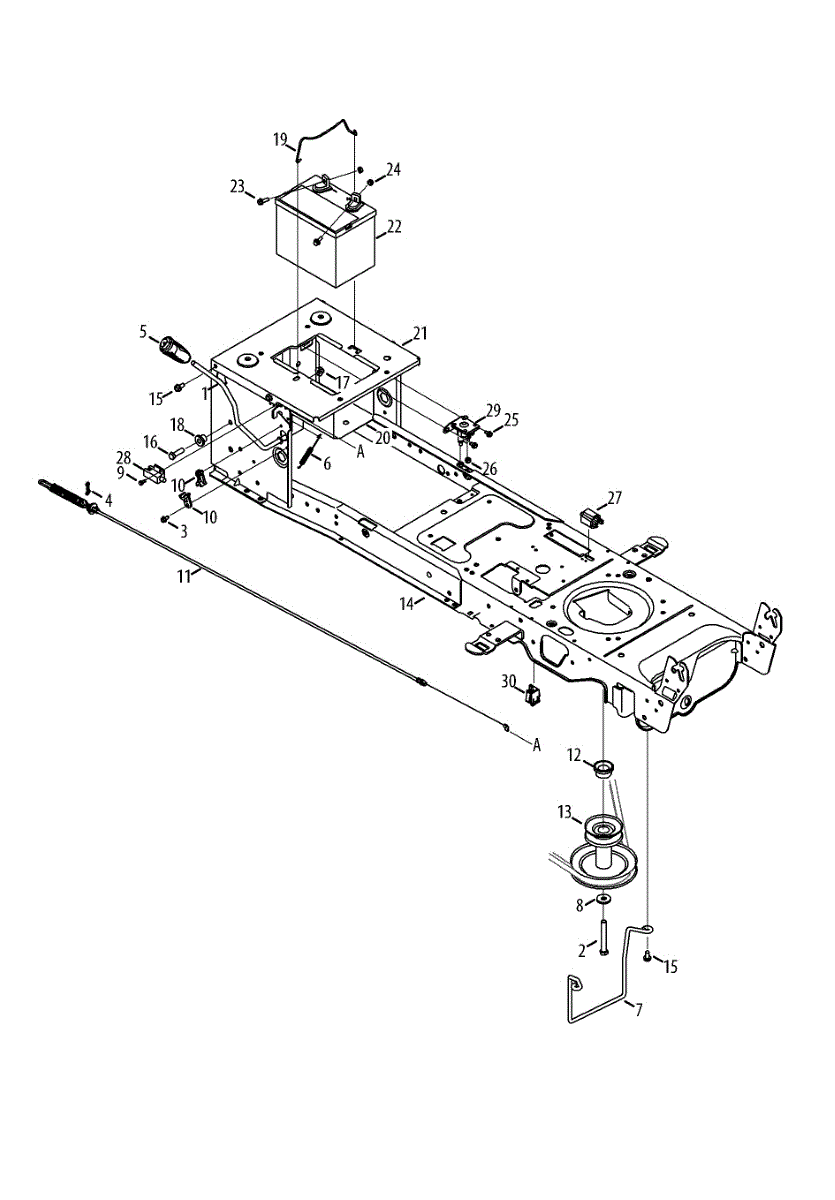 Battery hold down rod secures the battery in position on lawn tractors and riding mowers. Replace if bent, dented, snapped, or missing to restore proper fit.