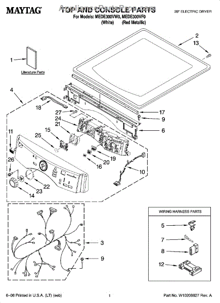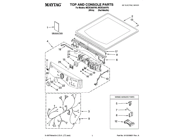 Maytag W10057358 Tech Sheet OEM Part