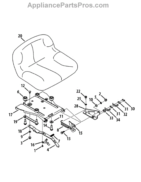 Replacement seat pivot bracket for lawn tractors. Mounts underneath the seat to allow smooth turning motion for easy entry and exit. Needed when cracked or bent.