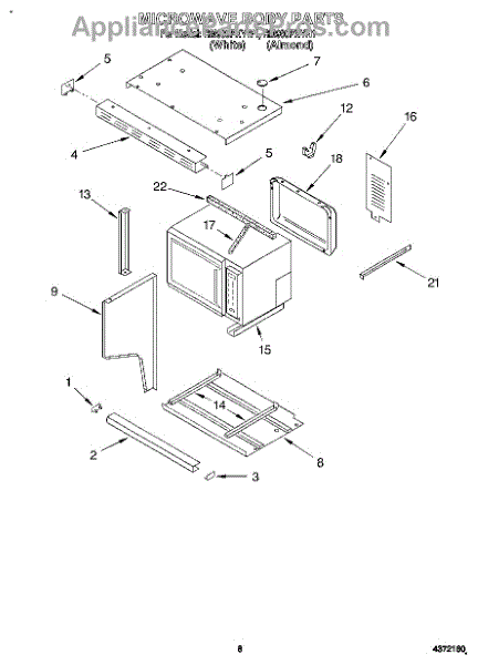 Parts for Whirlpool RM980PXYW1: 08 - Microwave Body Parts