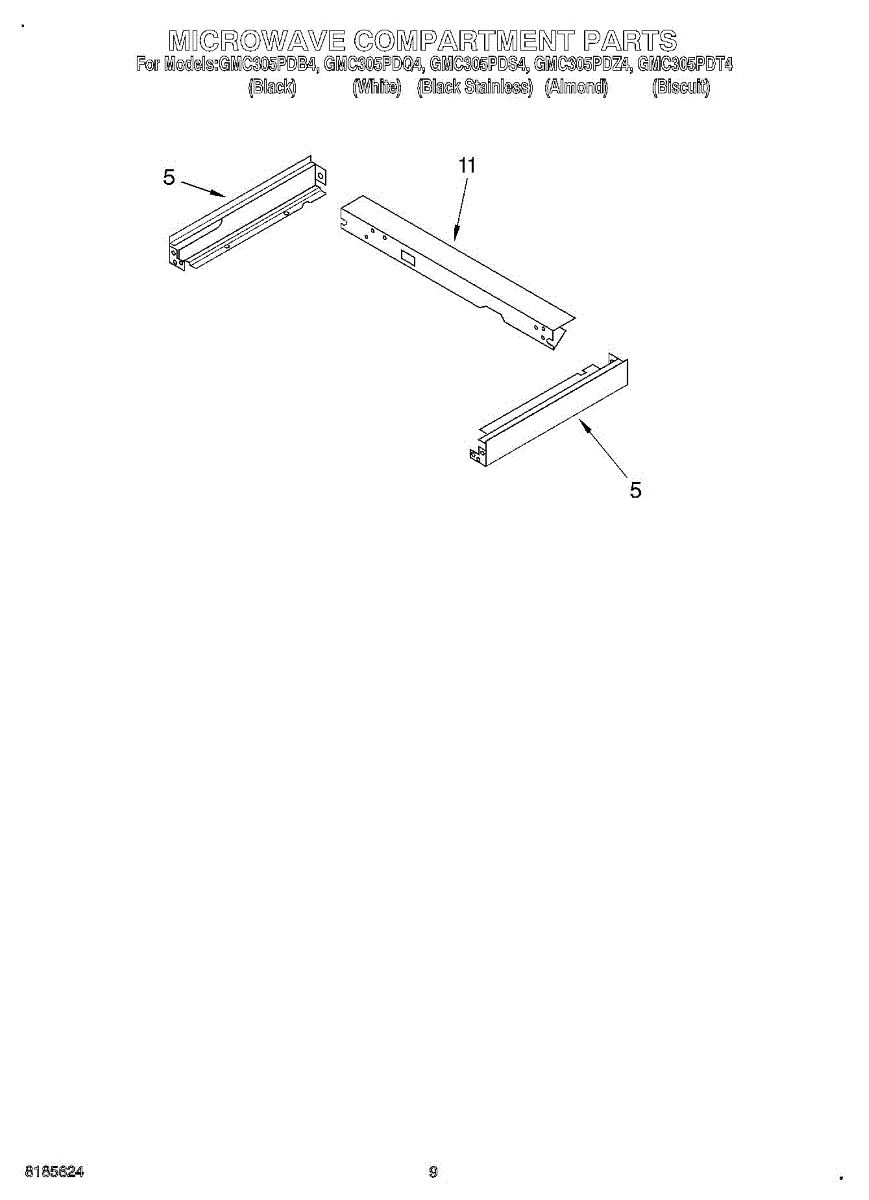 Parts for Whirlpool GMC305PDB4: 07 - Microwave Compartment Parts