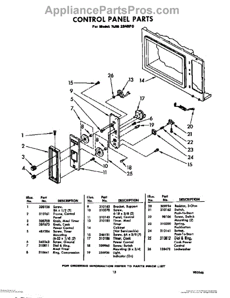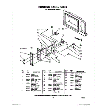 Parts for Whirlpool RJM2840P0: 13 - Microwave Control Panel Parts