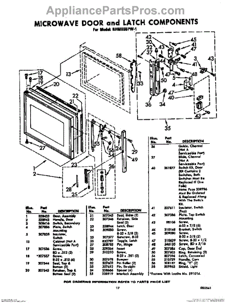 Parts for Whirlpool RHM955PW1: 17 - Microwave Door And Latch Parts