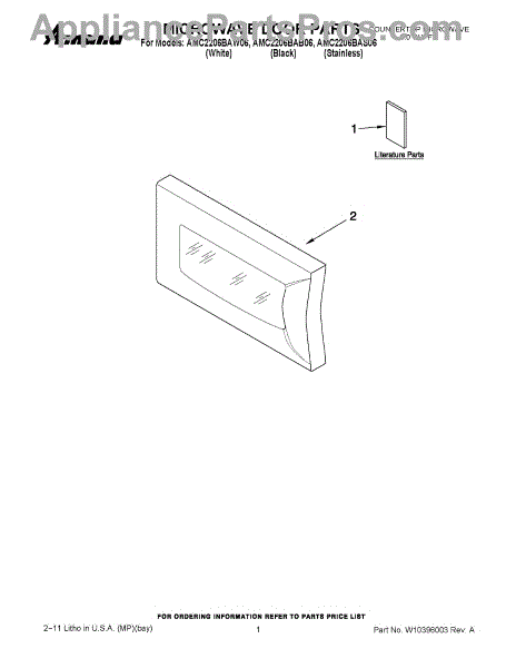 Parts for Amana AMC2206BAS06: 01 - Microwave Door Parts